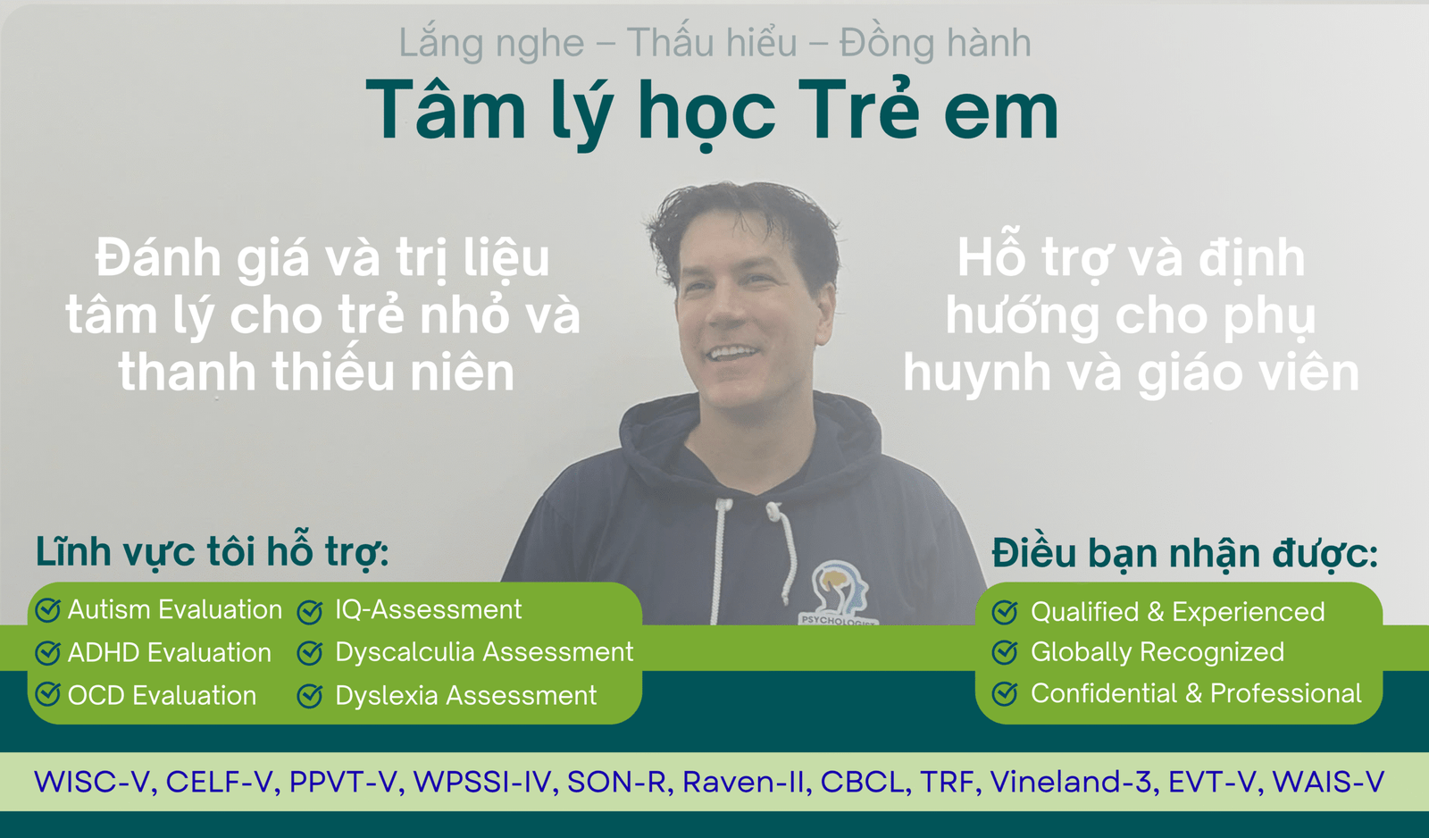 Hello, I’m Merijn Mattheijssen, a qualified child psychologist with over 15 years of experience supporting children and families. I currently run my own independent clinic here in Danang, and I’m also flexible to travel to both Hanoi and Ho Chi Minh City when needed.